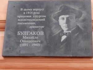 В его честь установлена мемориальная доска,которая украсила фронтон теперешнего офтальмологического отделения, где Булгаков во время Первой мировой войны нес свою медицинскую вахту.